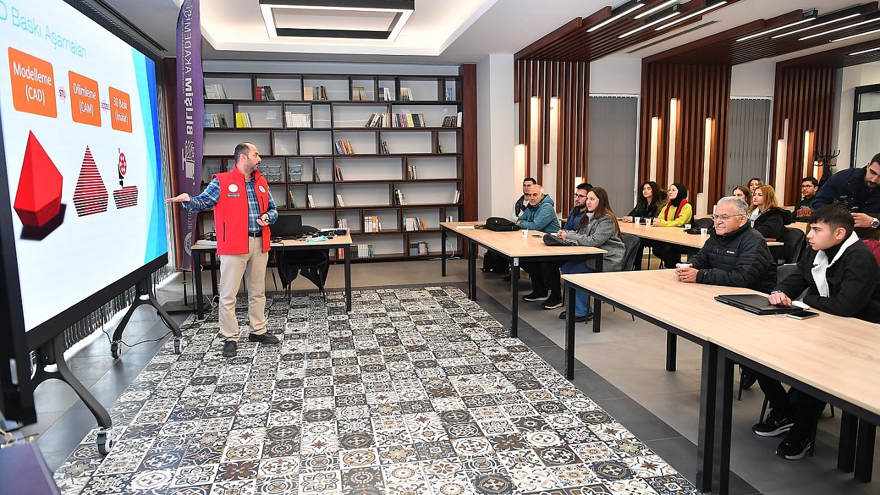 Akıllı Şehircilik ve Bilgi İşlem Daire Başkanlığı bünyesinde faaliyetlerini sürdüren Bilişim Akademisi, teknoloji ve bilimi toplumun her kesimine ulaştırma vizyonuyla eğitimlerine hız kesmeden devam ediyor. Bilim ve Toplum Şube Müdürlüğü’nün "Bilimi toplumla, toplumu bilimle buluşturma" misyonu kapsamında düzenlenen son eğitim programında, Erciyes Havacılık Kulübü öğrencileri 3 Boyutlu Modelleme eğitimiyle buluştu.