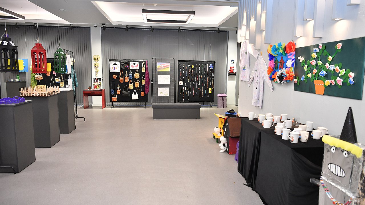 Sergide, geri dönüşüm malzemelerinden yapılan el sanatları ve resimlerin yanı sıra, öğrencilerin bilişsel ve fiziksel gelişimlerine katkı sağlamak amacıyla gerçekleştirilen çeşitli atölye çalışmalarının sonuçları da yer alıyor. Sergide, kırık çöp kovalarından yapılan puf koltuklar, eski bezlerden oyuncak bebekler, atık iplerden yapılan kapı süsleri gibi dikkat çekici eserlerin yanı sıra, resim, tuz seramiği, kolye, anahtarlık, kitap ayracı, bileklik, tespih yapımı gibi 500 farklı sanat ürünü olan, Besime Özderici Engelsiz Yaşam Merkezi ve ZİÇEV’de eğitim, tedavi gören öğrenciler ve onların değerli aileleri tarafından, yüzde 60’ı geri dönüşümden üretilen eserler sergileniyor.