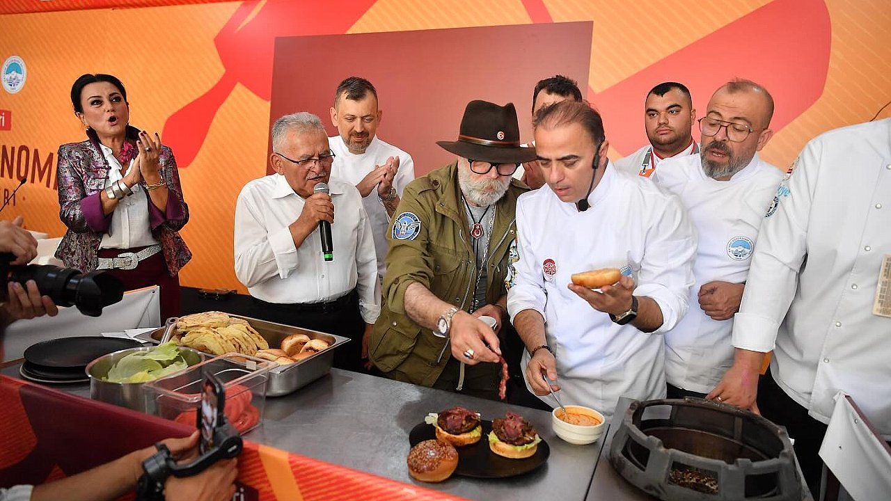Başkan Büyükkılıç, pastırma doğradı, Erkilet bölgesinin ünlü kedi bacağı isimli cevizli pekmez sucuğu yapımına eşlik ederek Kayseri Gastronomi Günleri’nde düzenlenen yemek atölyesi ile sempozyuma da katıldı. Başkan Büyükkılıç, Kayseri’nin lezzetlerini ve değerlerini tek tek anarak tanıtımını yaptı.