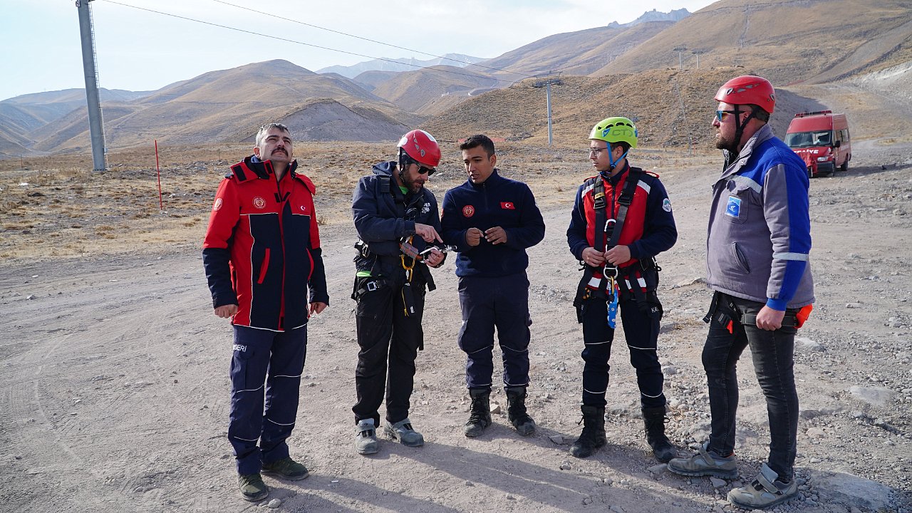 Kayak merkezlerinde olası teleferik arızaları veya diğer acil durumlarda yolcuların güvenli şekilde tahliye edilmesi için kritik öneme sahip olan bu eğitim, ekiplerin birlikte koordineli hareket etmesi ve bu tür operasyonlar için hazırlıklı bir ekip oluşturulması açısından kritik önem taşıyor.